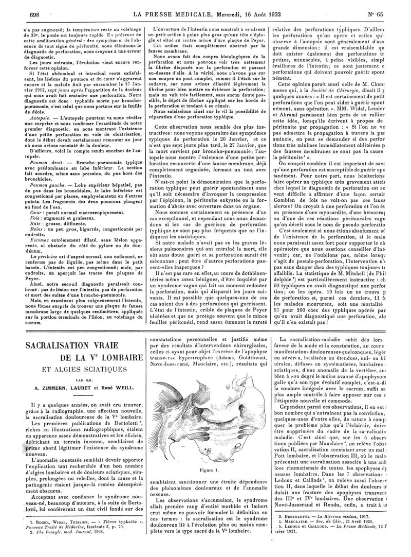1922, Articles originaux. -