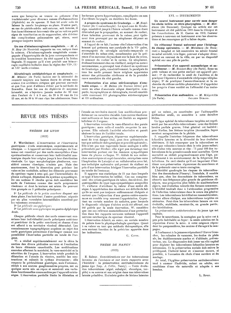 1922, Articles originaux. -
