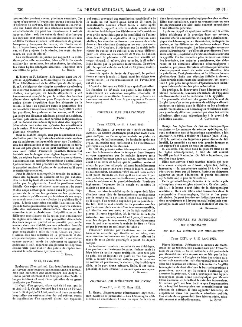 1922, Articles originaux. -