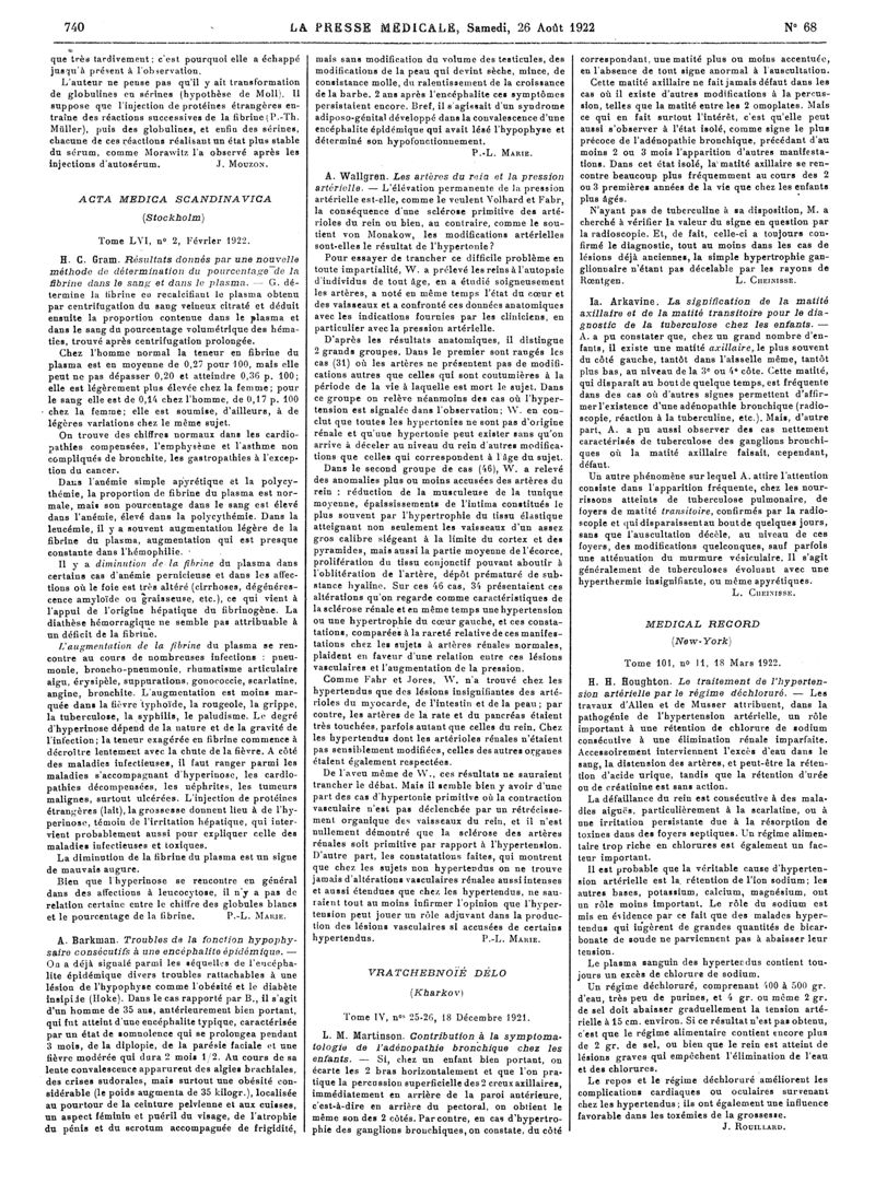 1922, Articles originaux. -