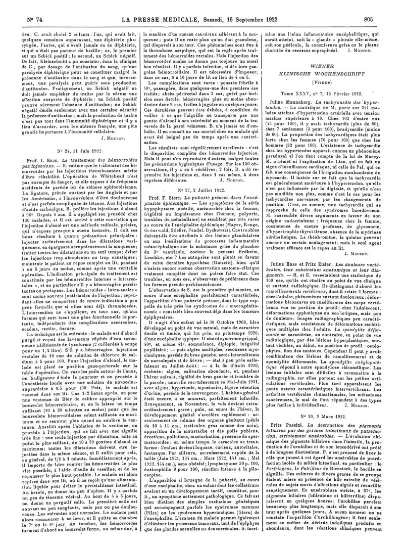 1922, Articles originaux. -