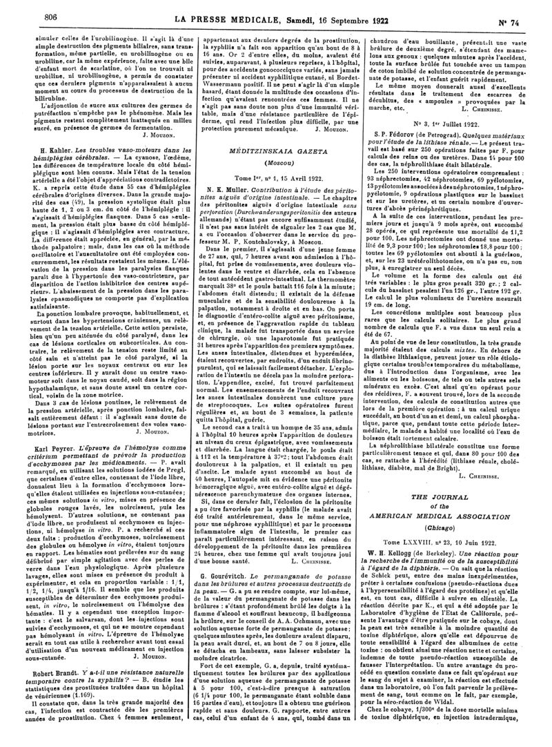 1922, Articles originaux. -