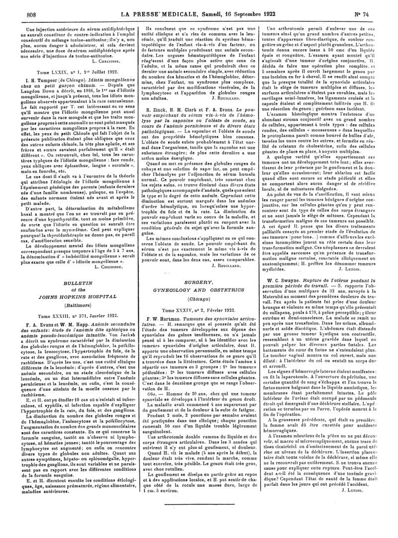 1922, Articles originaux. -