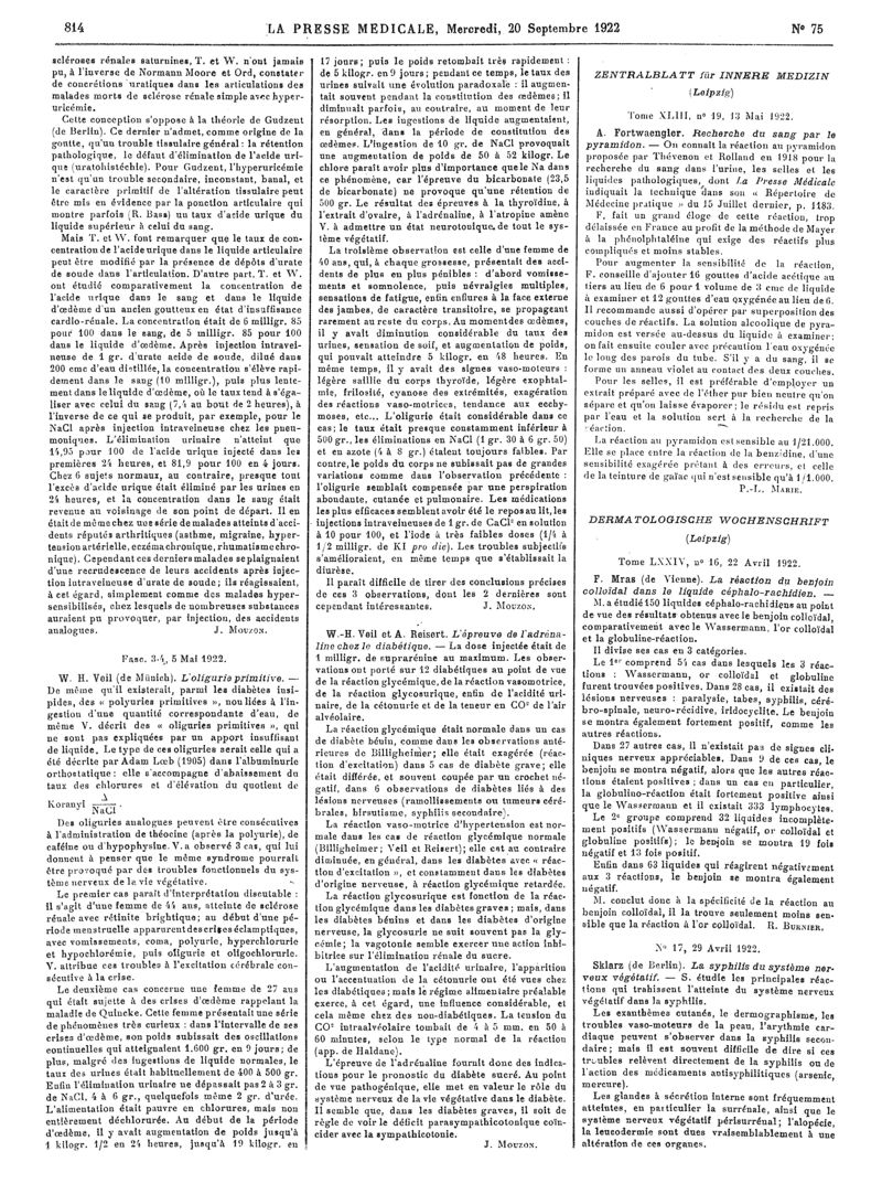 1922, Articles originaux. -