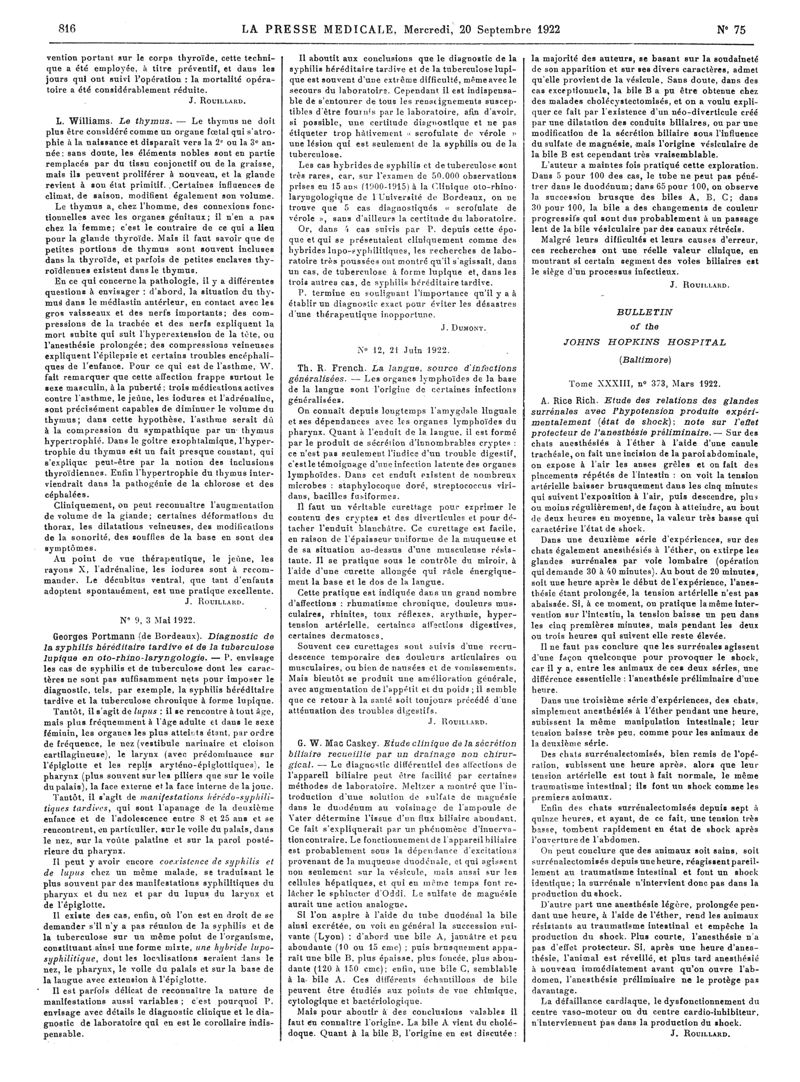 1922, Articles originaux. -