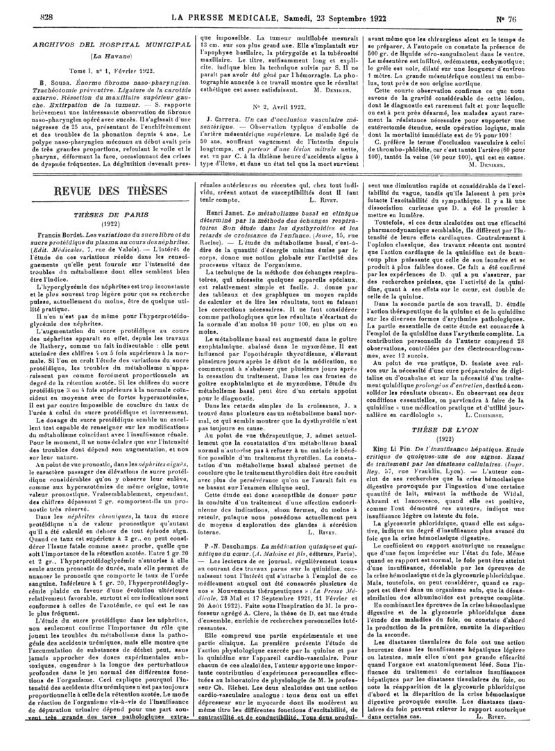1922, Articles originaux. -