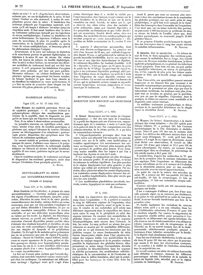 1922, Articles originaux. -