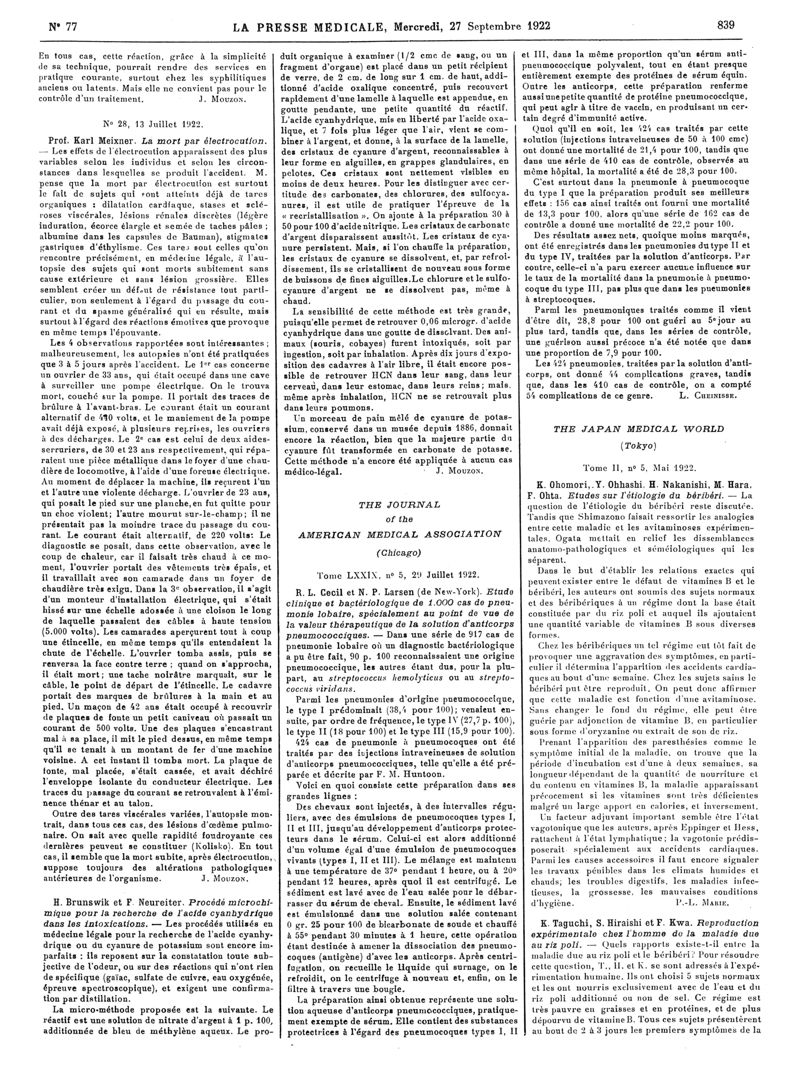 1922, Articles originaux. -