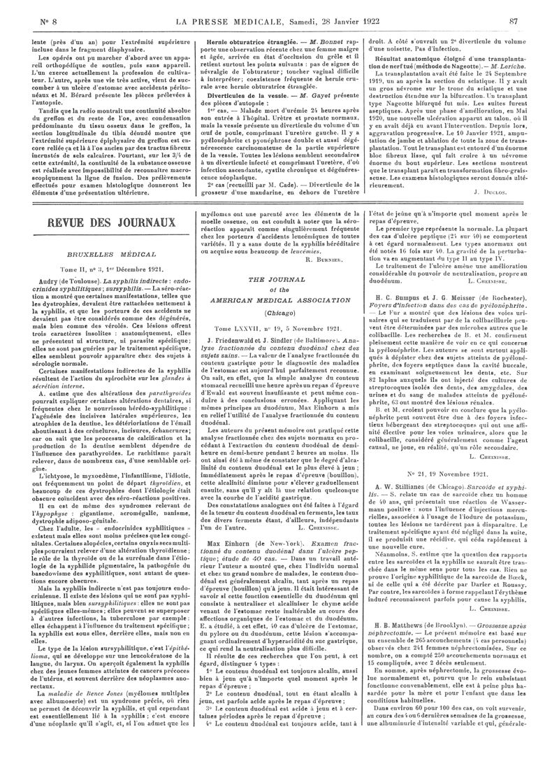 1922, Articles originaux. -