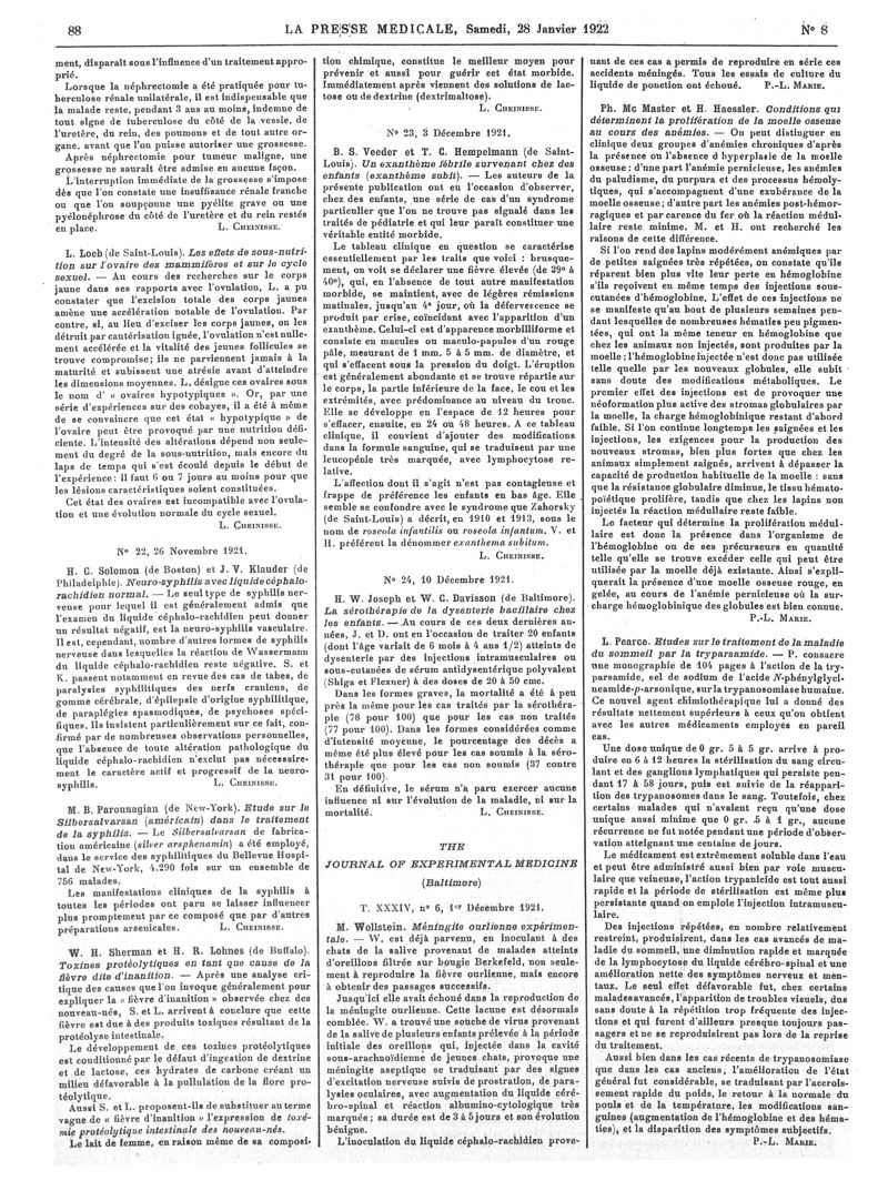 1922, Articles originaux. -