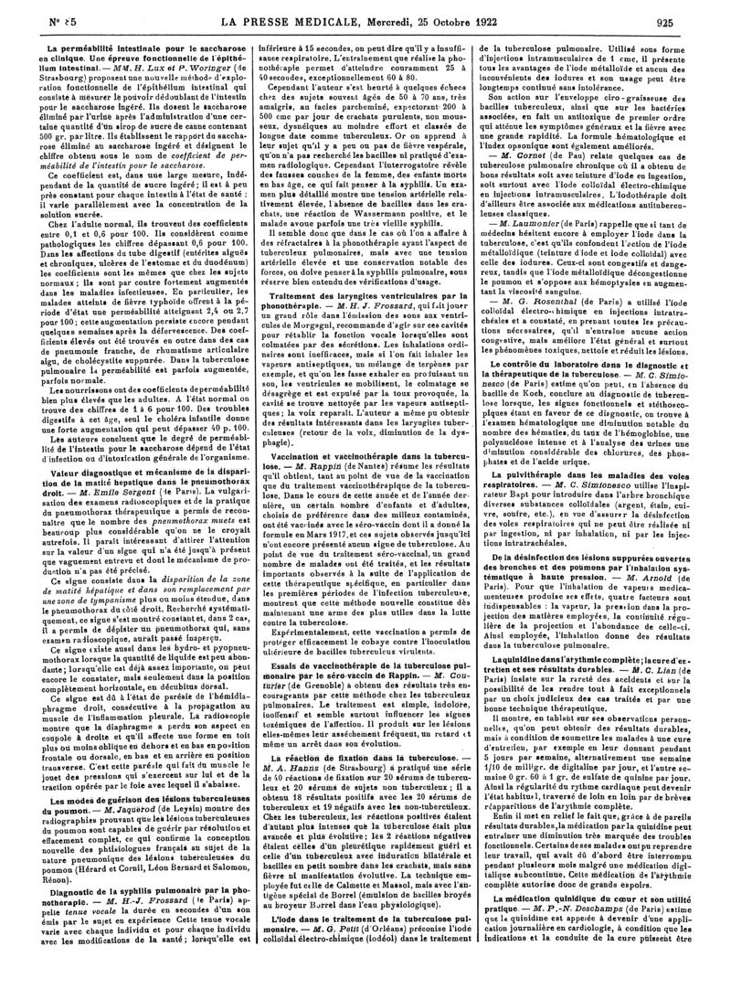 1922, Articles originaux. -