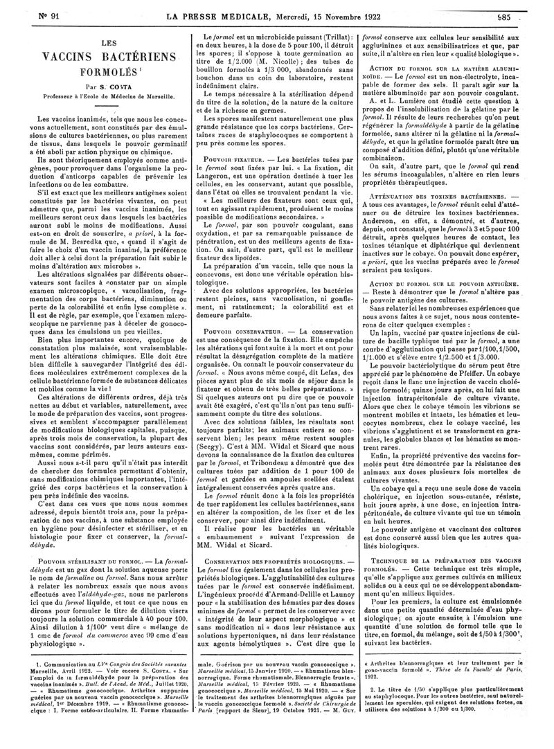 1922, Articles originaux. -