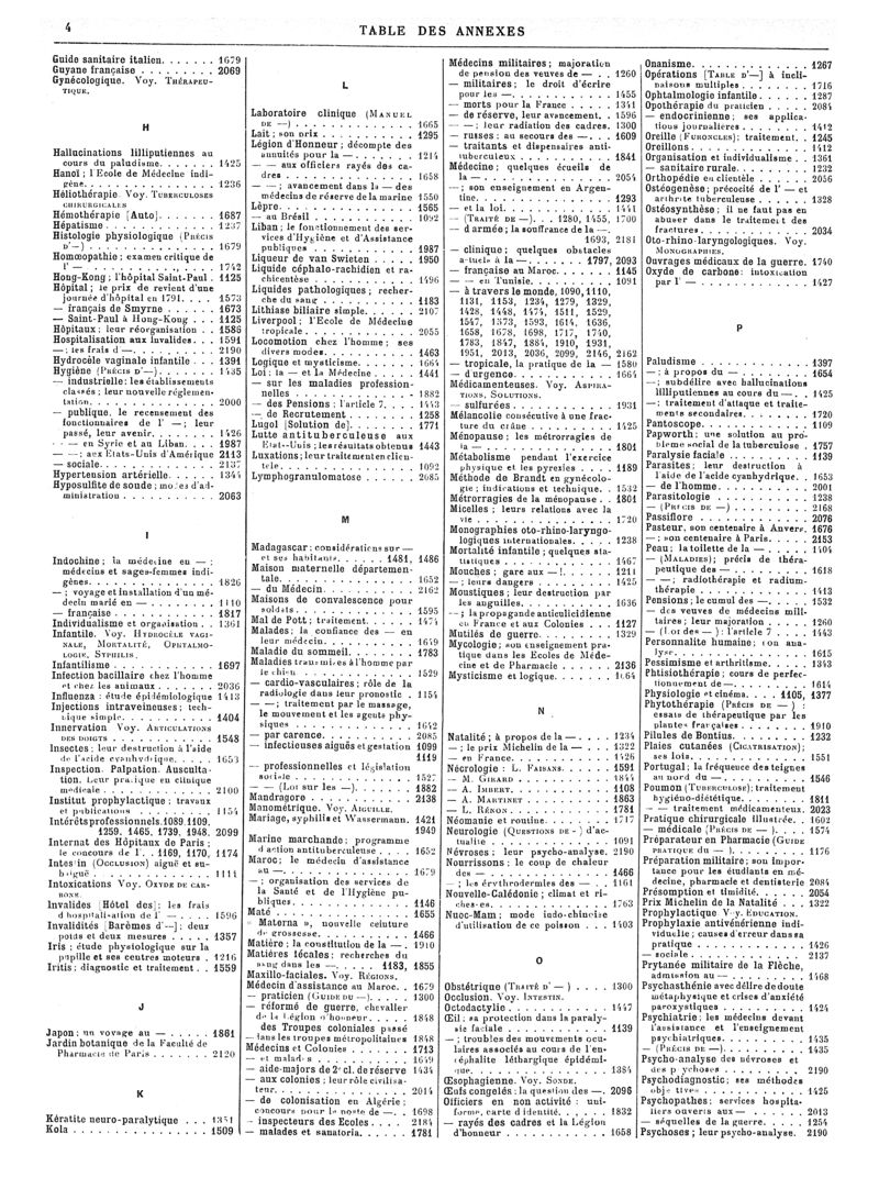 1922, Volume de tables. -