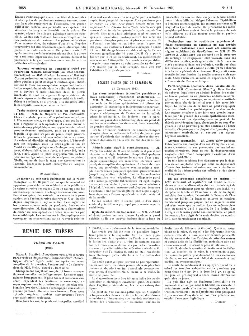1923, Articles originaux. -