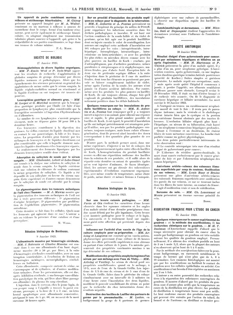 1923, Articles originaux. -