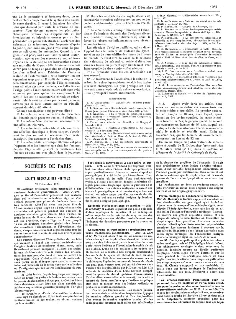 1923, Articles originaux. -