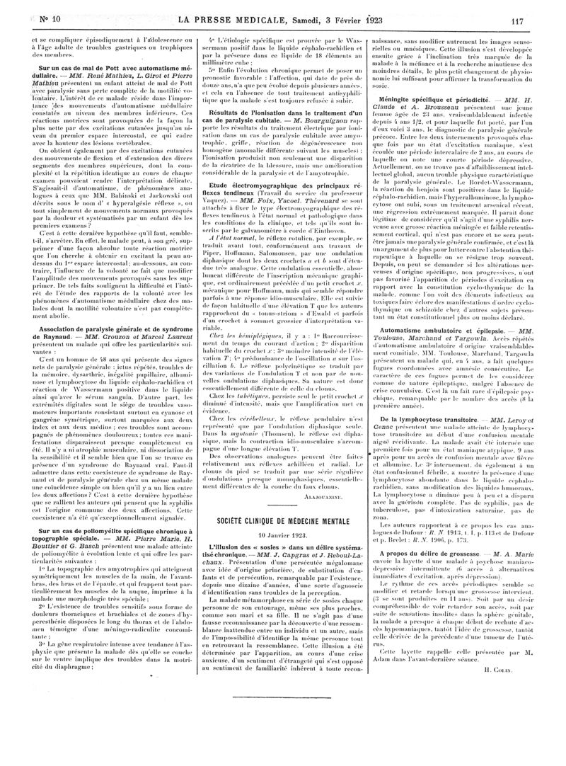 1923, Articles originaux. -