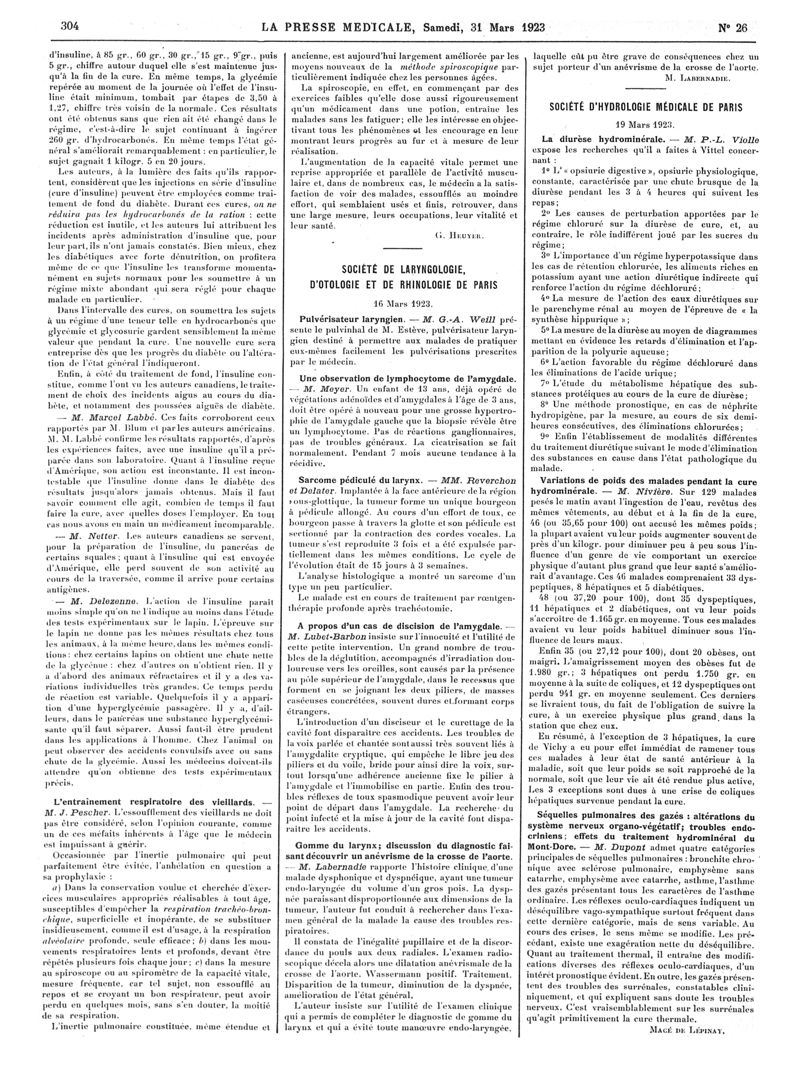 1923, Articles originaux. -