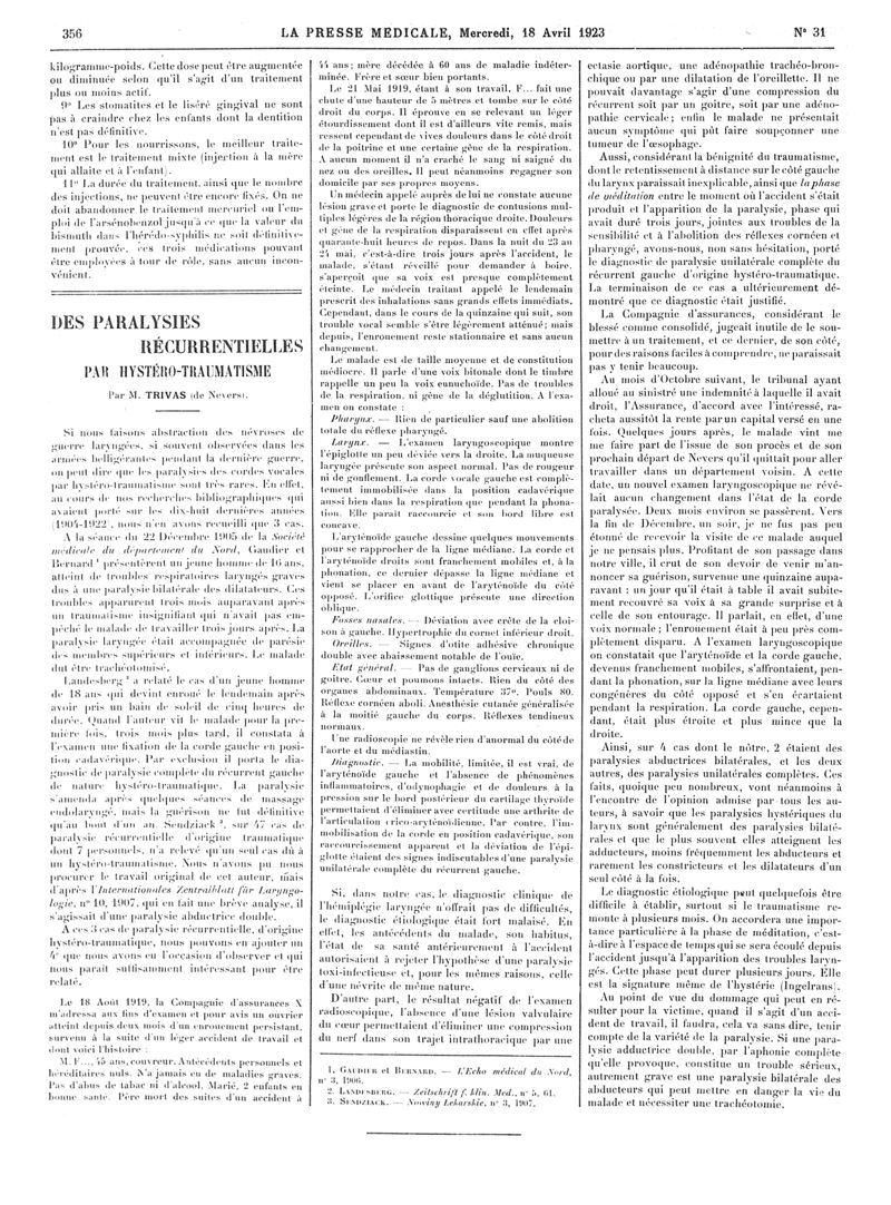 1923, Articles originaux. -