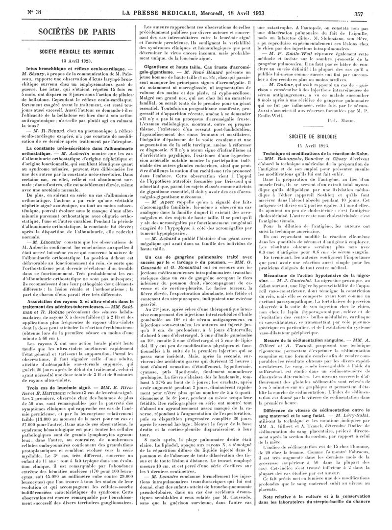 1923, Articles originaux. -