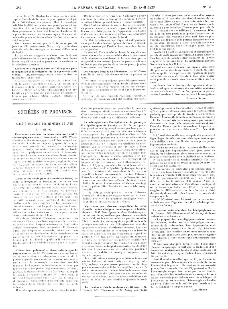 1923, Articles originaux. -