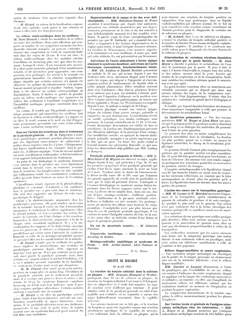 1923, Articles originaux. -