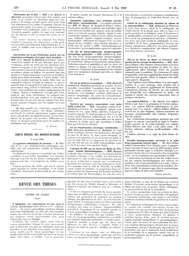 1923, Articles originaux. -