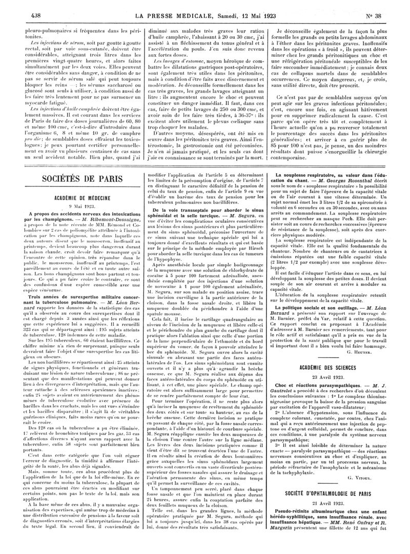 1923, Articles originaux. -
