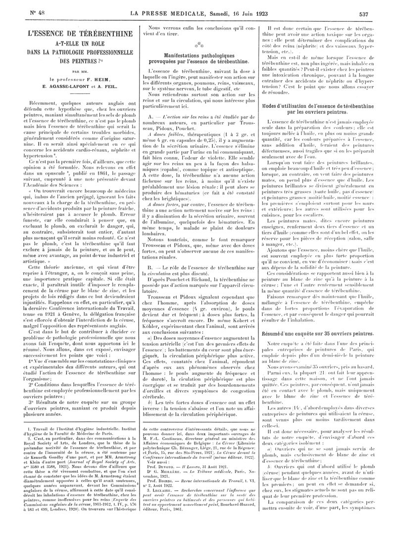1923, Articles originaux. -
