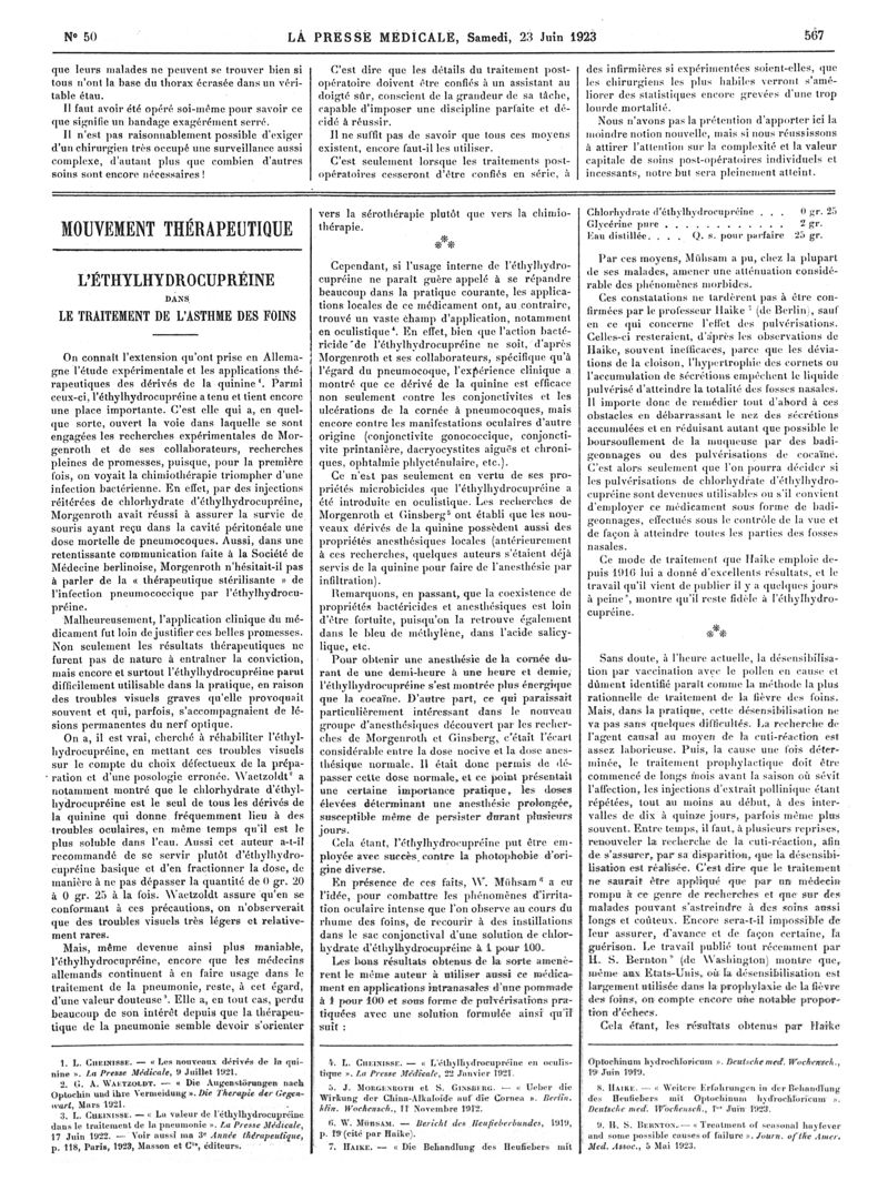 1923, Articles originaux. -