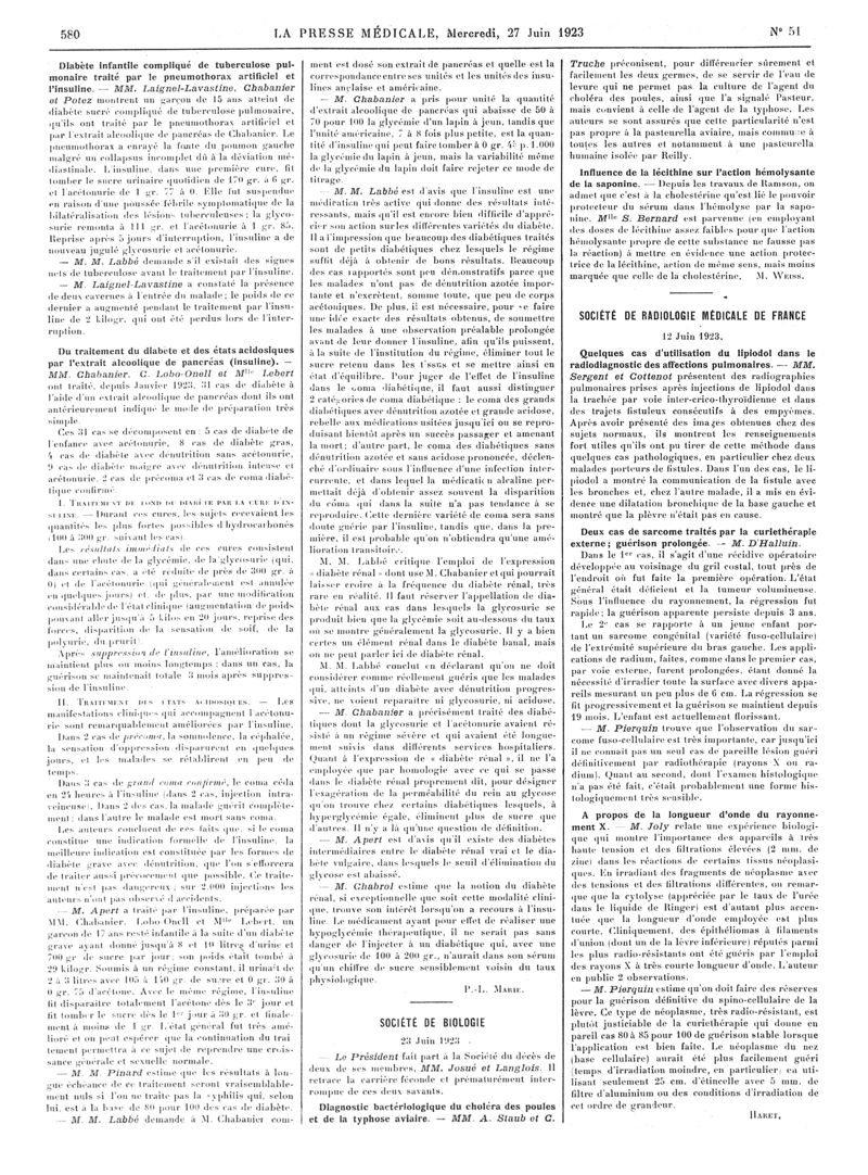 1923, Articles originaux. -