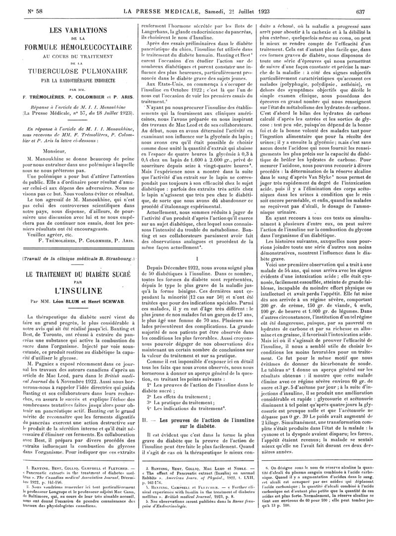 1923, Articles originaux. -