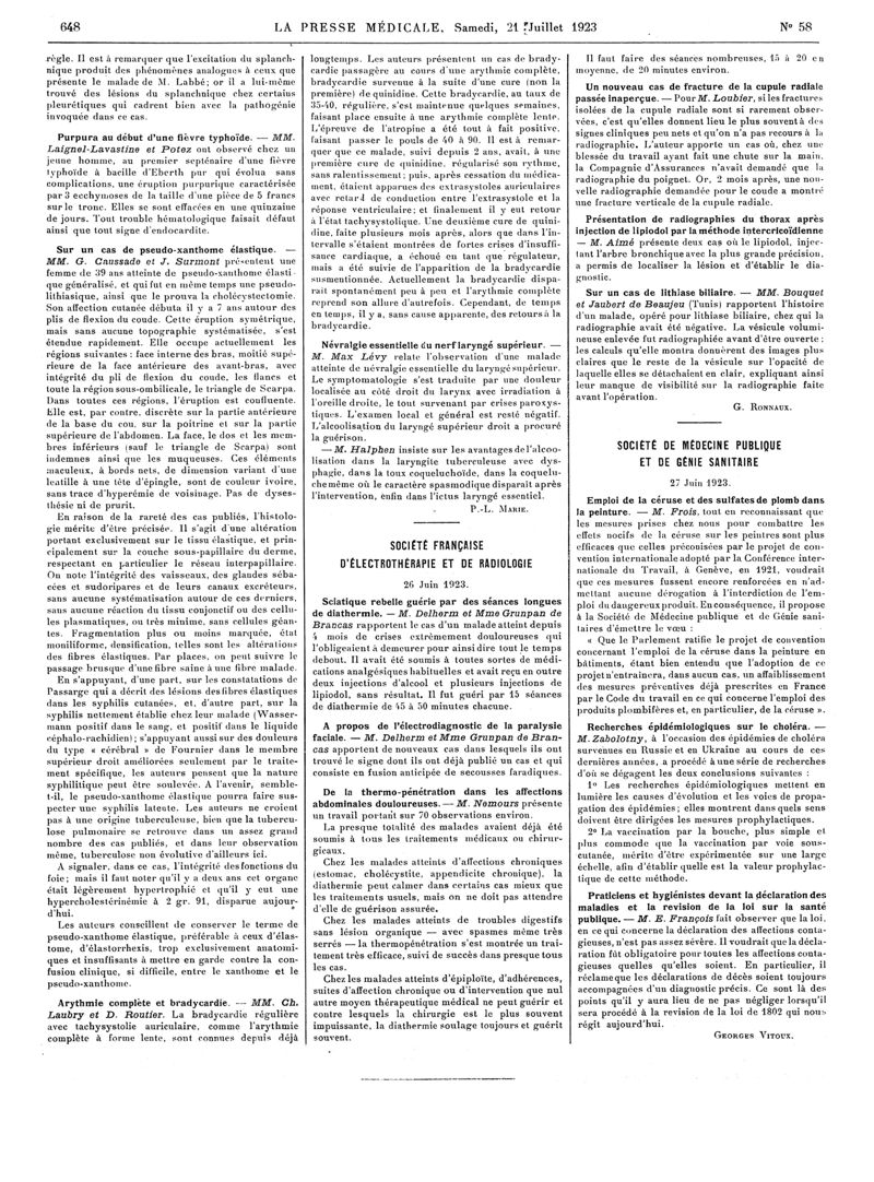 1923, Articles originaux. -