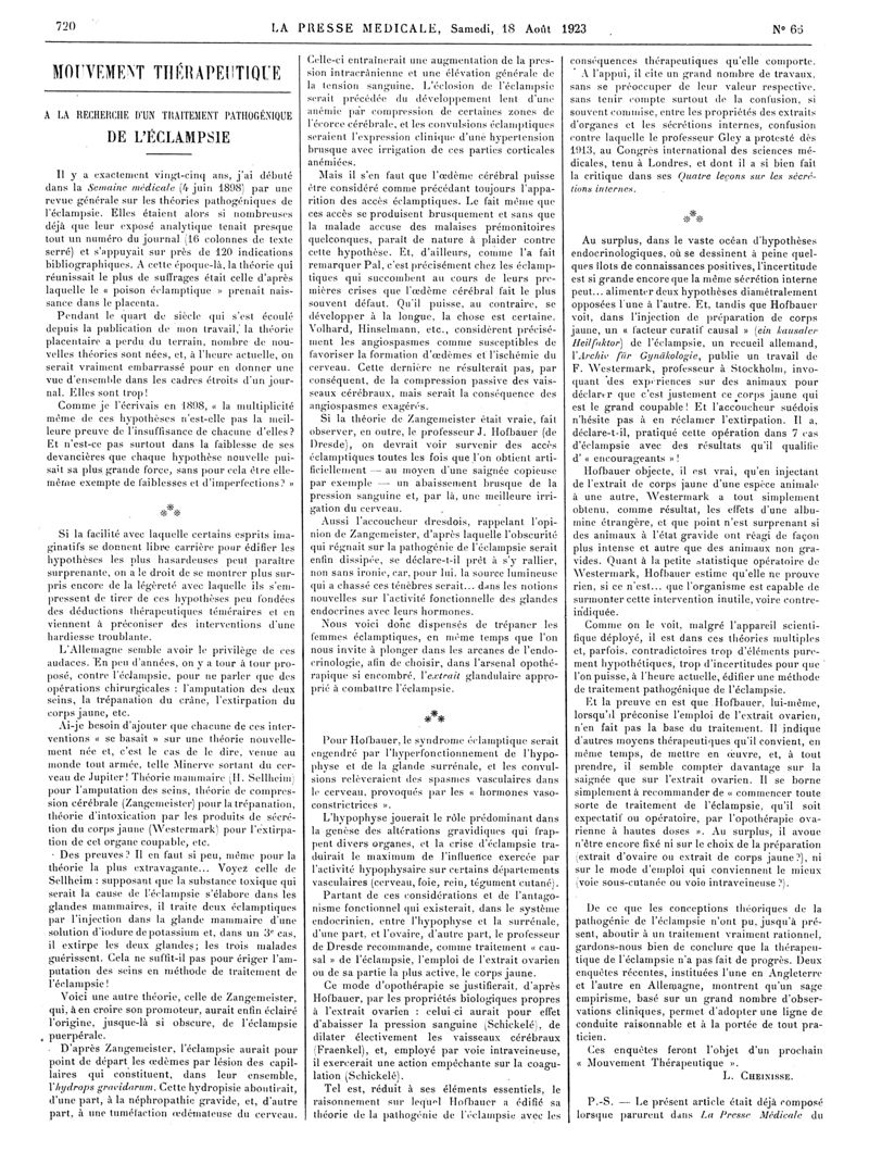1923, Articles originaux. -