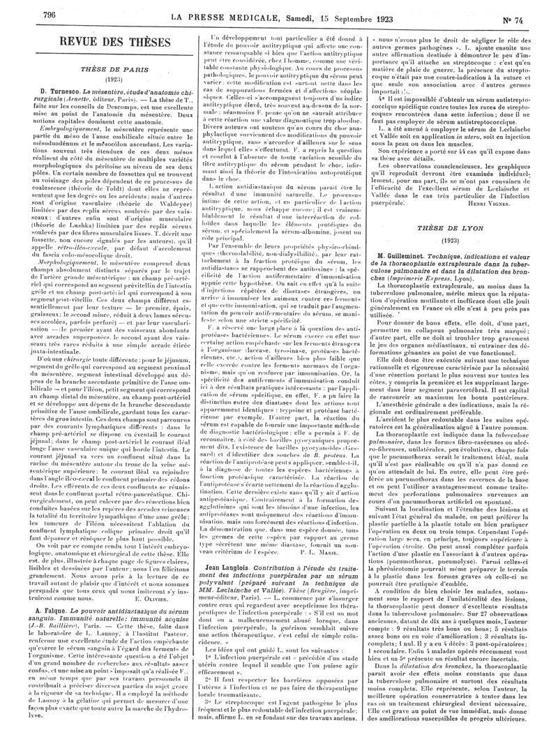 1923, Articles originaux. -