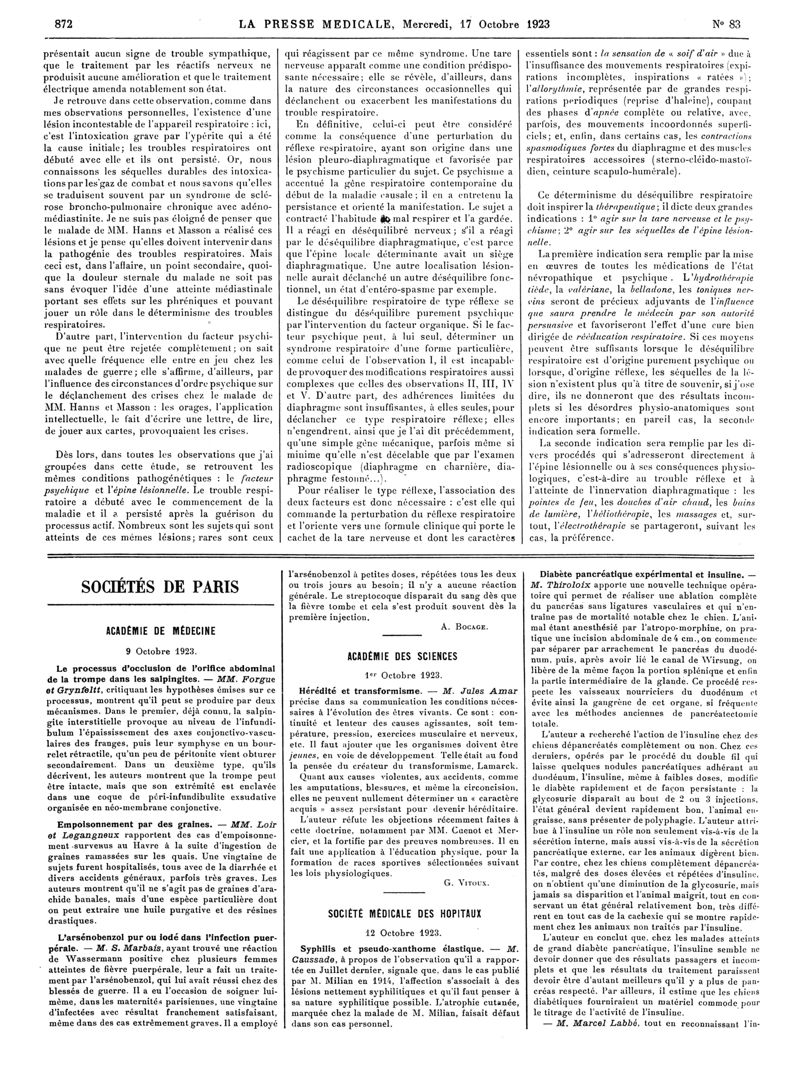 1923, Articles originaux. -