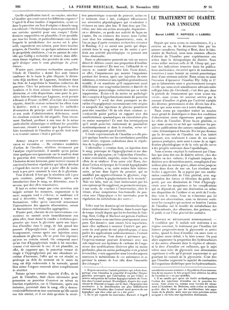 1923, Articles originaux. -
