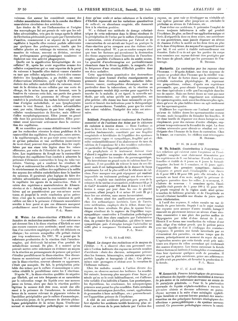 1923, Revue des journaux. -