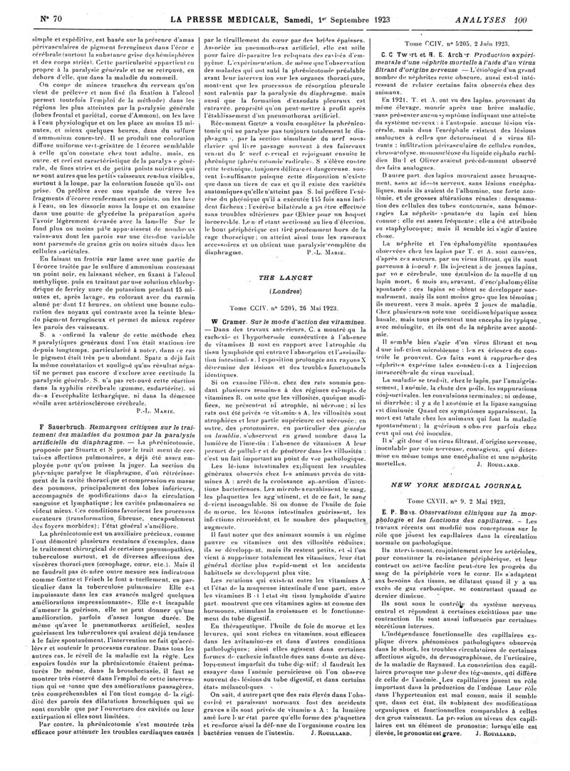 1923, Revue des journaux. -