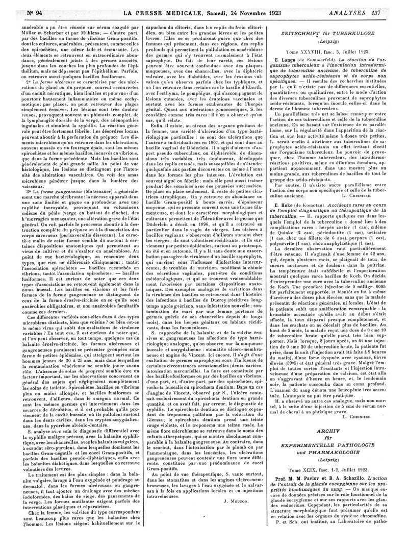 1923, Revue des journaux. -
