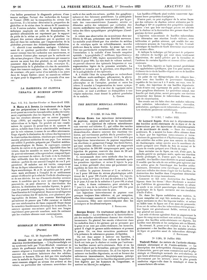 1923, Revue des journaux. -