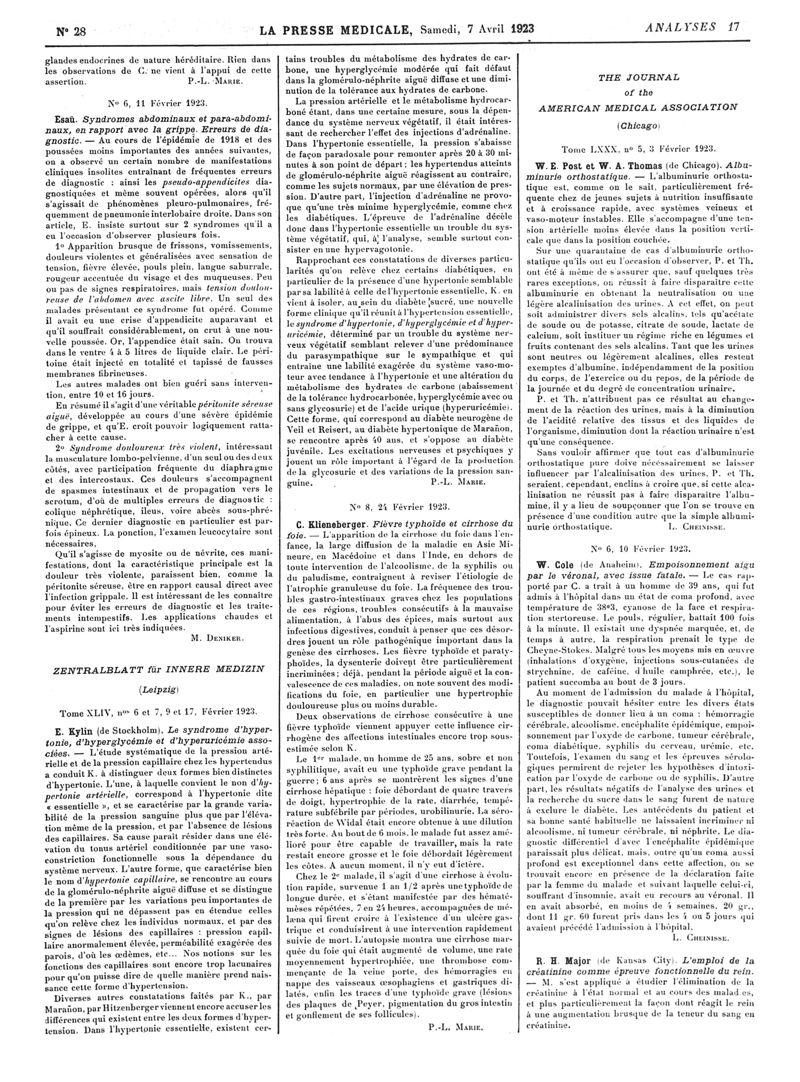 1923, Revue des journaux. -