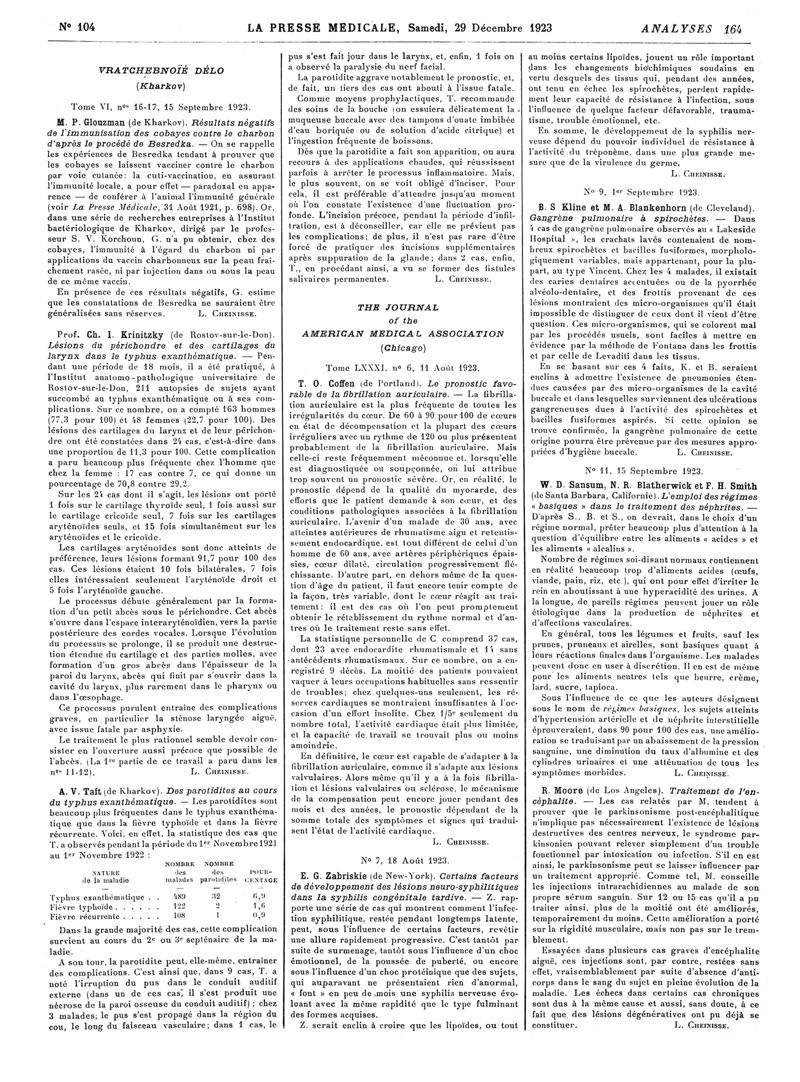 1923, Revue des journaux. -