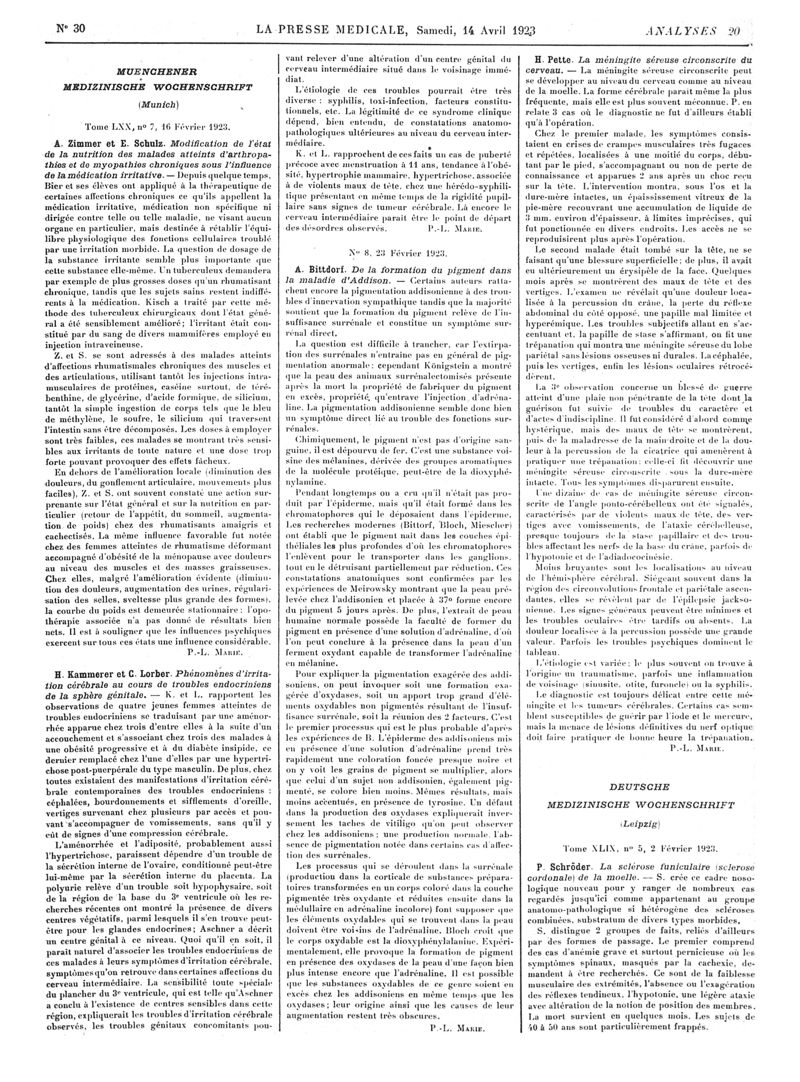 1923, Revue des journaux. -