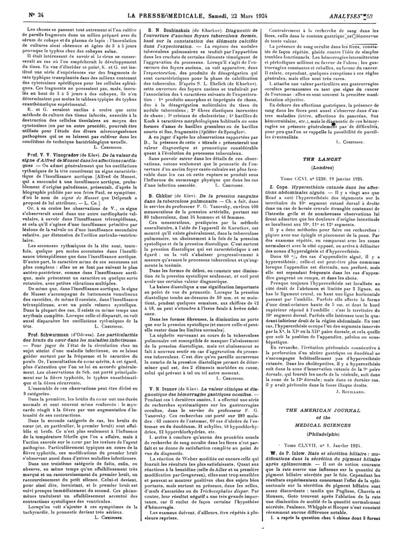 1924, Revue des journaux. -