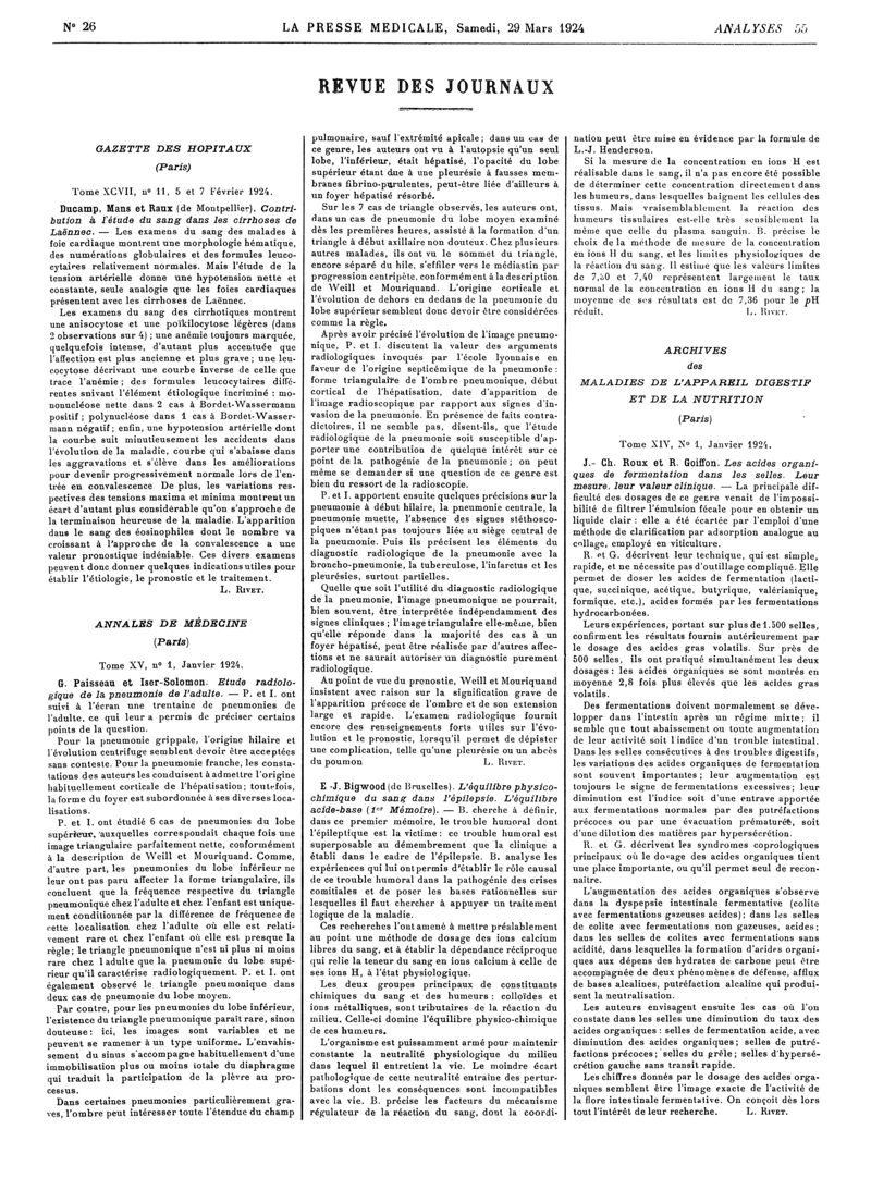1924, Revue des journaux. -