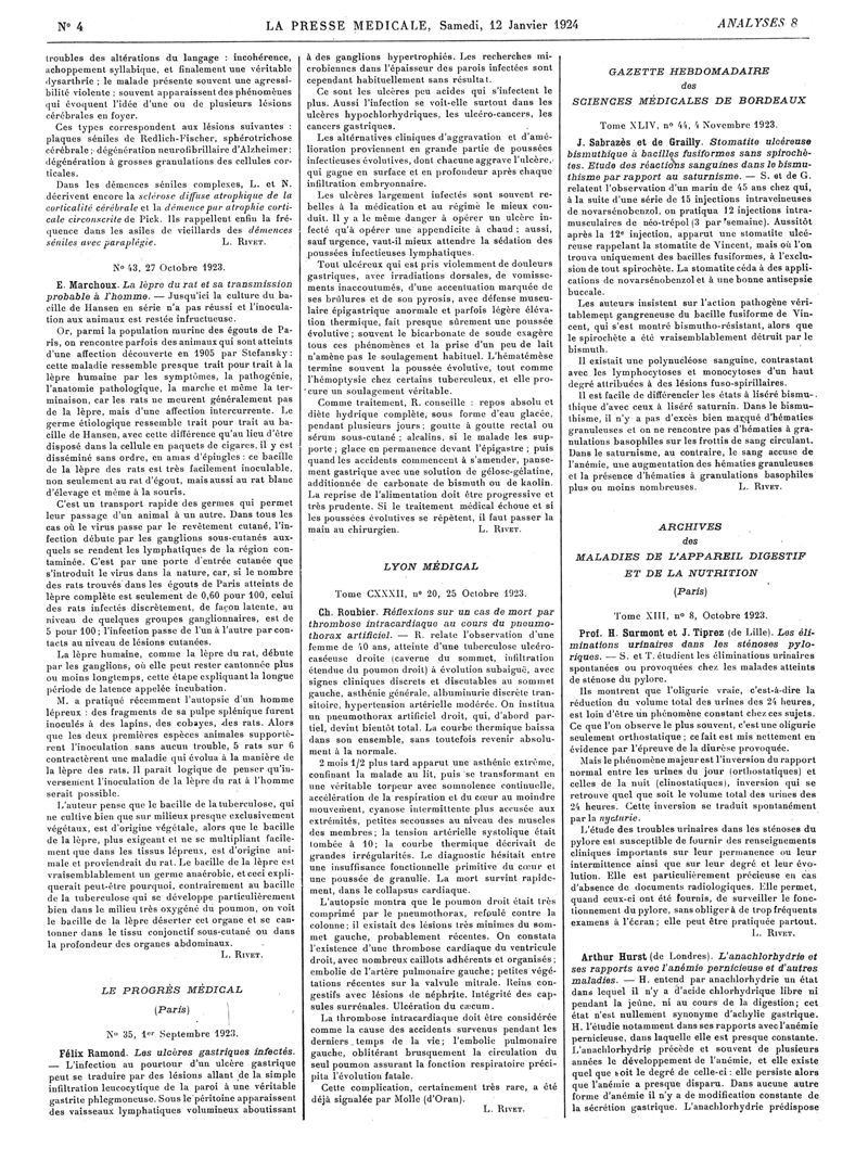 1924, Revue des journaux. -