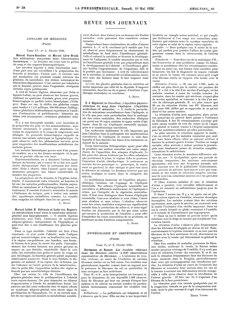1924, Revue des journaux. -