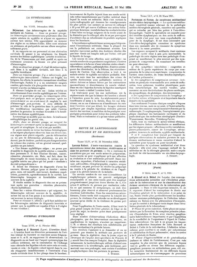 1924, Revue des journaux. -