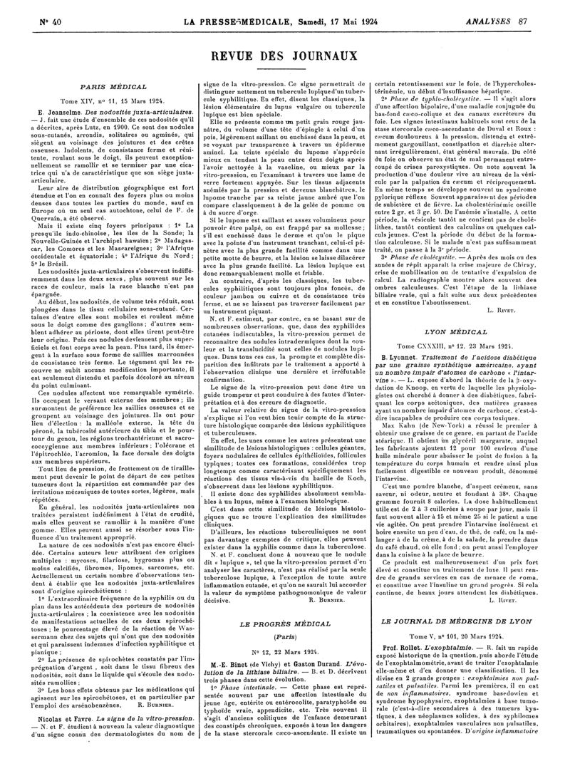 1924, Revue des journaux. -